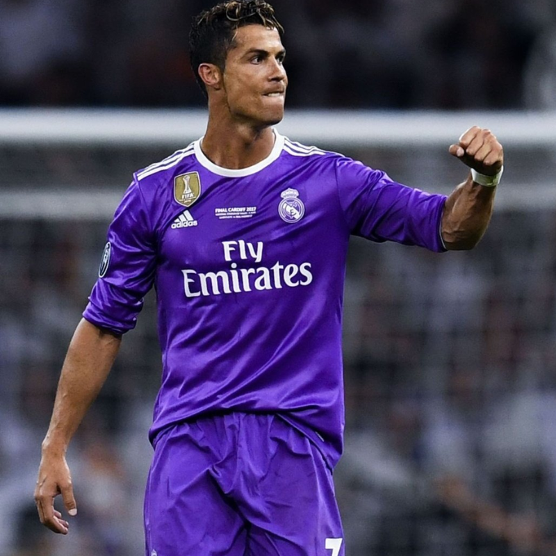 Reviví una de las noches más gloriosas del Real Madrid con esta camiseta suplente morada, utilizada en la final de la Champions League 2017 en Cardiff, donde los “Merengues” vencieron a la Juventus y conquistaron su duodécima Copa de Europa.